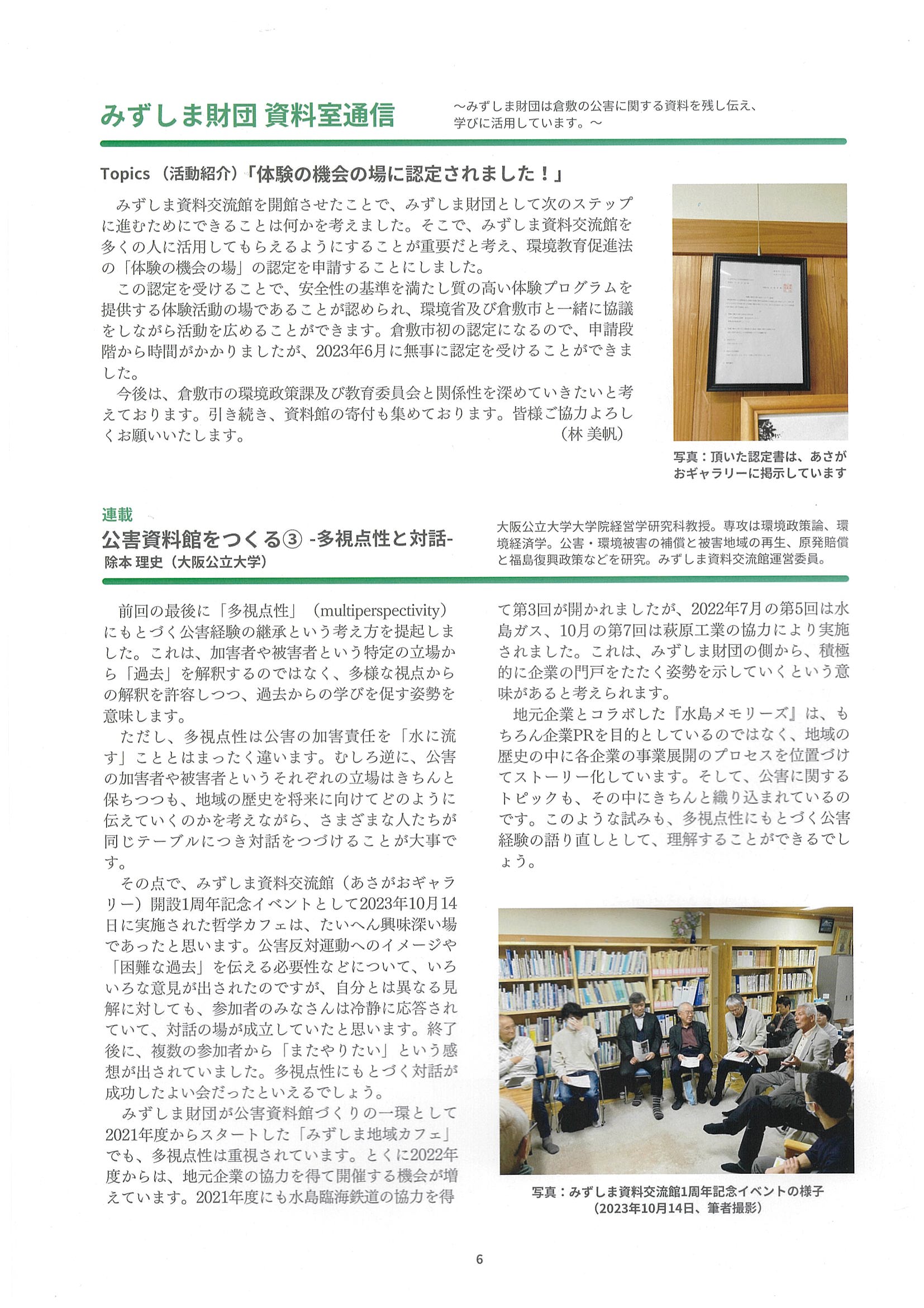 「体験の機会の場に認定されました!」連載「公害資料館をつくる③除本理史(大阪公立大学)