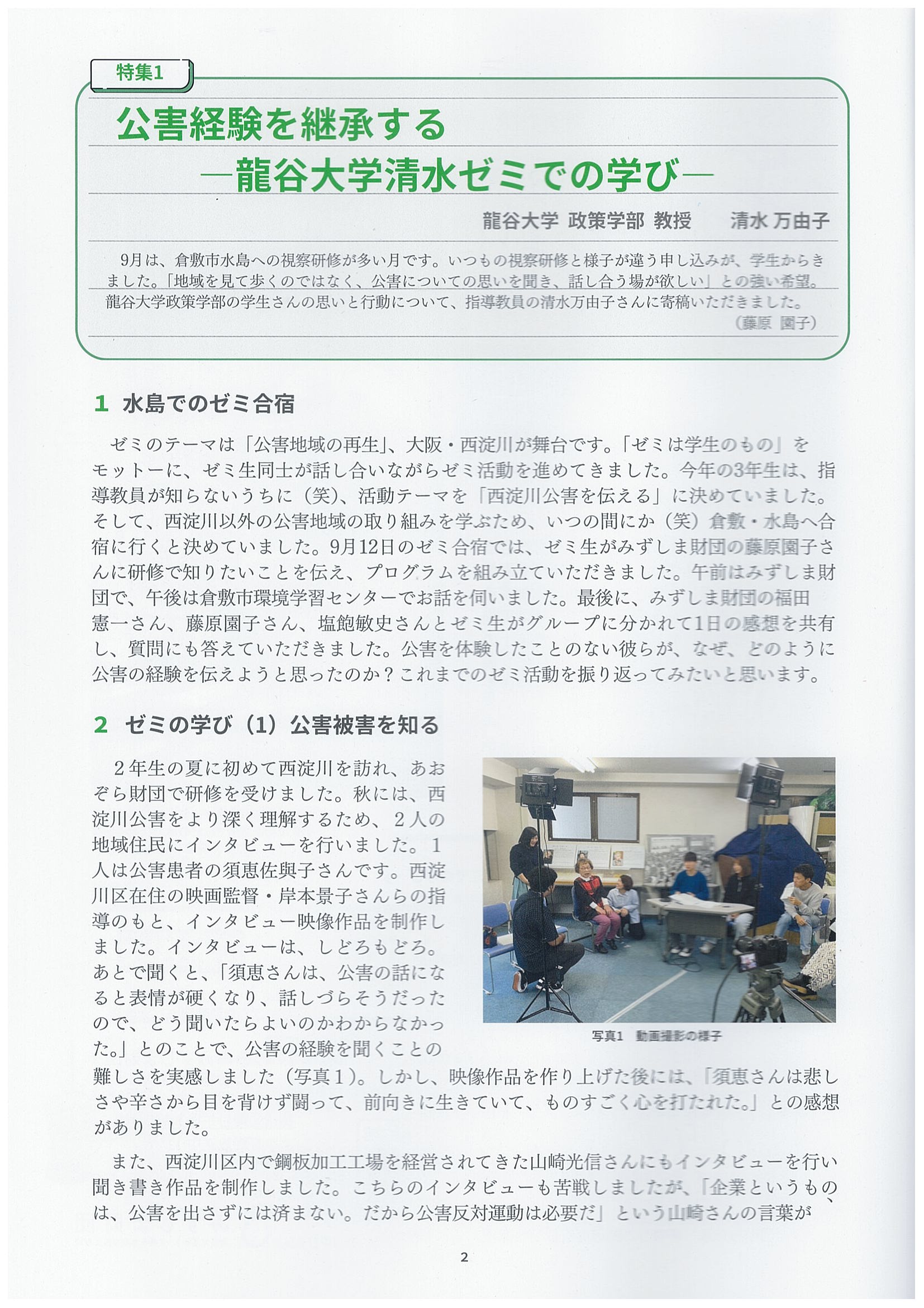 ■特集1「公害経験を継承する-龍谷大学清水ゼミでの学び-」清水万由子(龍谷大学政策学部 教授)