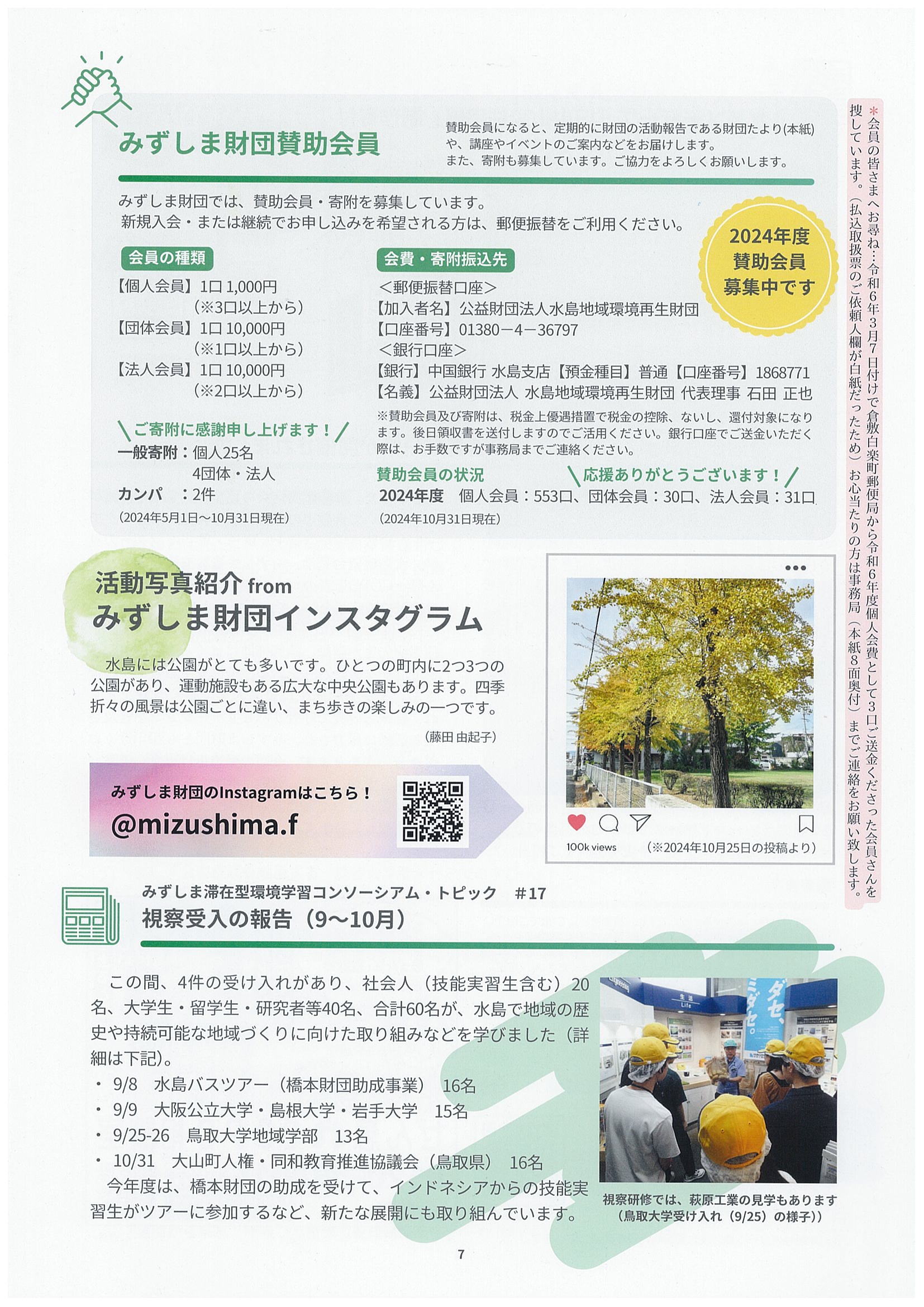 ■みずしま財団賛助会員のご案内/活動写真紹介fromインスタグラム/みずしま滞在型環境学習コンソーシアム・トピック#17