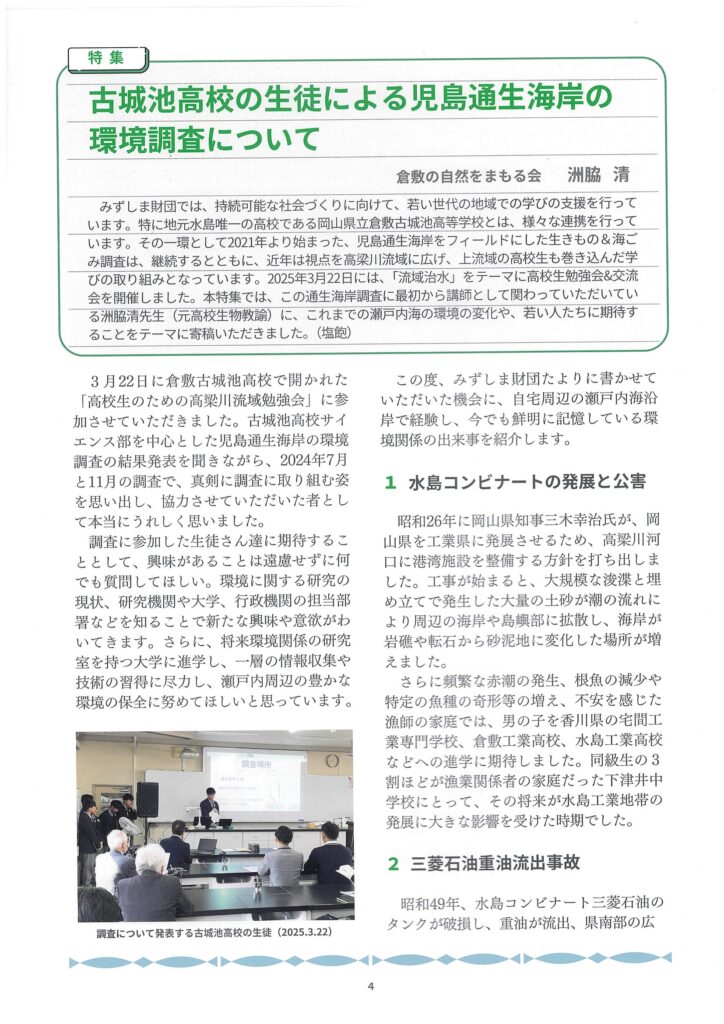 ■特集「古城池高校の生徒による児島通生海岸の環境調査について」 洲脇清(倉敷の自然を守る会)