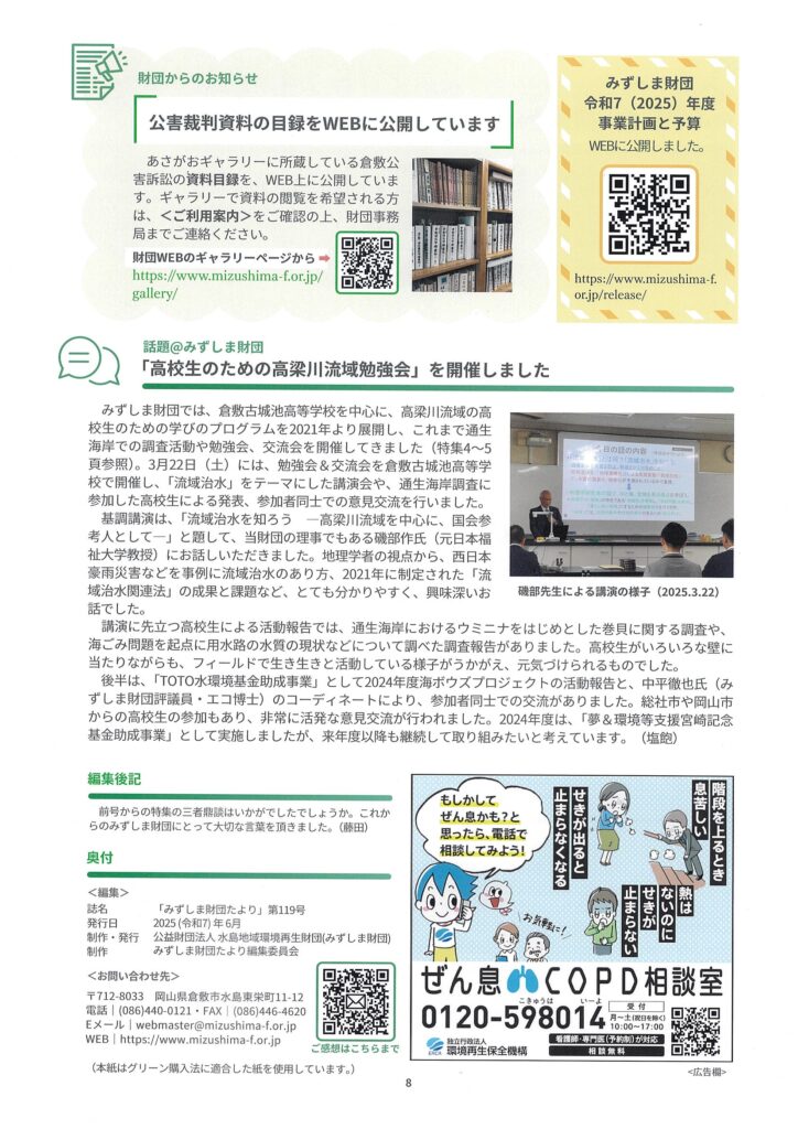 ■財団からのお知らせ「公害裁判資料の目録をWEBに公開しています」「みずしま財団令和7(2025)年度事業計画と予算」